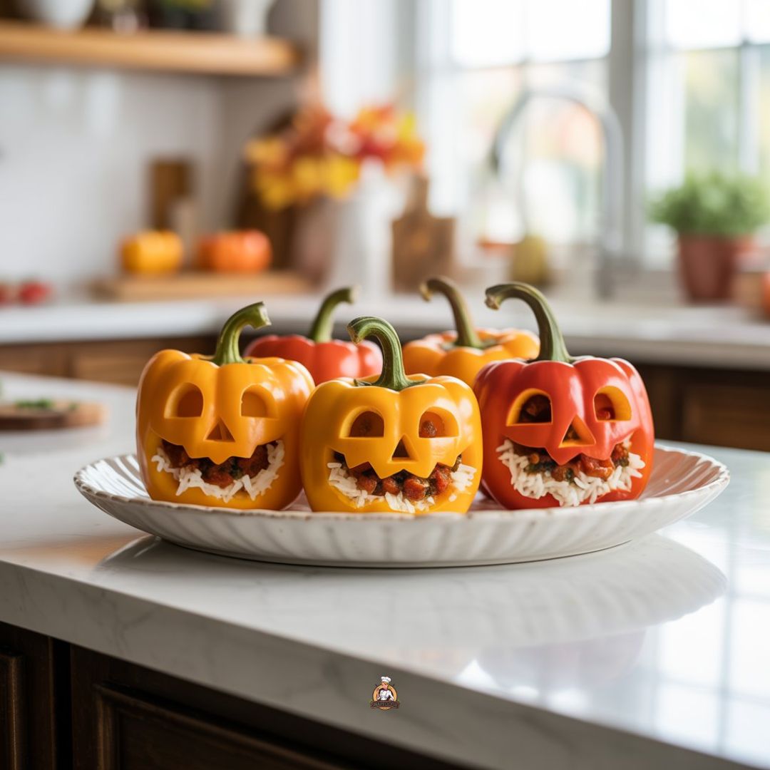 Jack-oโ-Lantern Stuffed Bell Peppers Dinner Recipe ๐