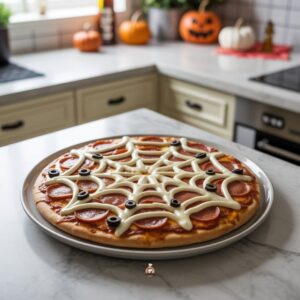 I’m thrilled about how fun this Spider Web Pizza looks once it’s done! 🕸️